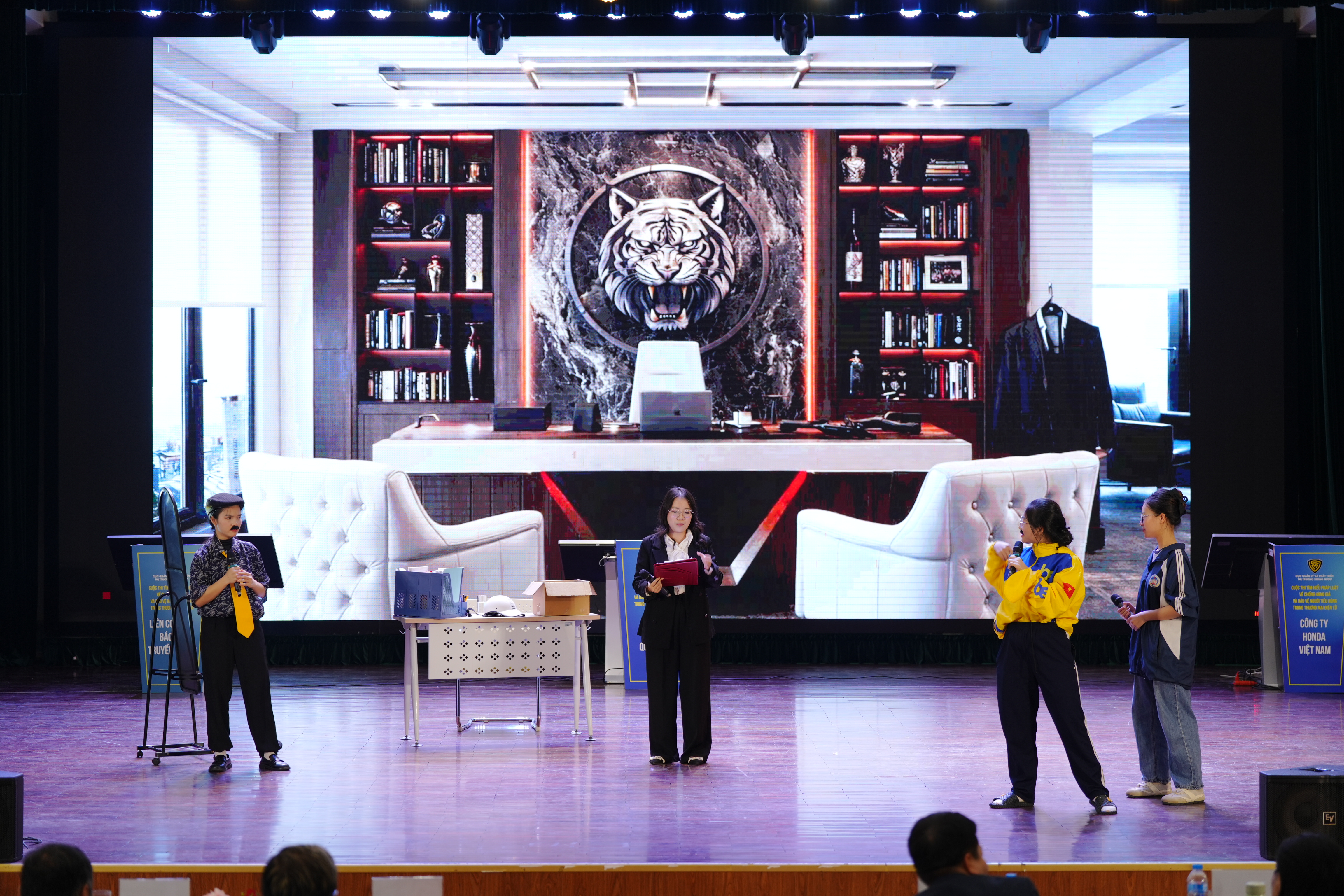Với sự cổ vũ nồng nhiệt của hàng trăm cổ động viên, các phần thi chính thức của Cuộc thi nhanh chóng “nóng lên” bằng màn thể hiện sôi động của ba đội thi đại diện cho các lực lượng nòng cốt trong đời sống kinh tế – xã hội, gồm đội sinh viên Đại học Kinh tế Quốc dân, đội Liên cơ quan báo chí và truyền thông và đội doanh nghiệp Honda Việt Nam. Mỗi đội mang đến góc nhìn riêng, thể hiện sự chuẩn bị nghiêm túc, kiến thức pháp luật vững vàng và tinh thần thi đấu quyết tâm, tạo nên không khí sôi nổi, kịch tính xuyên suốt các vòng thi.